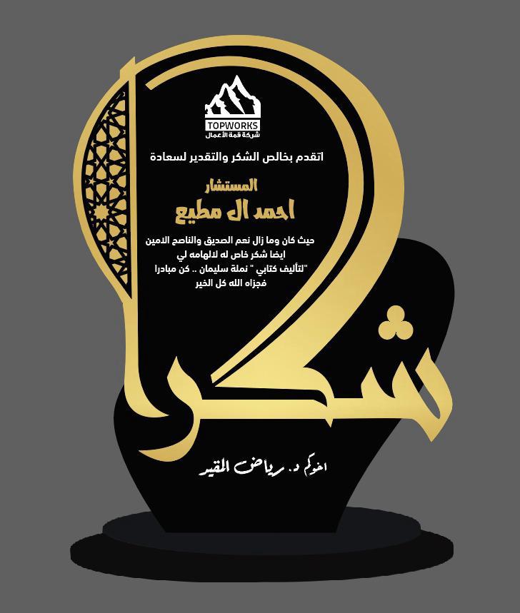 درع تذكاري تم تسليمه لسعادة المستشار أحمد آل مطيع