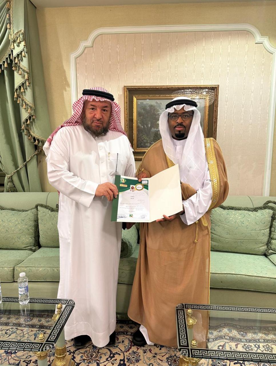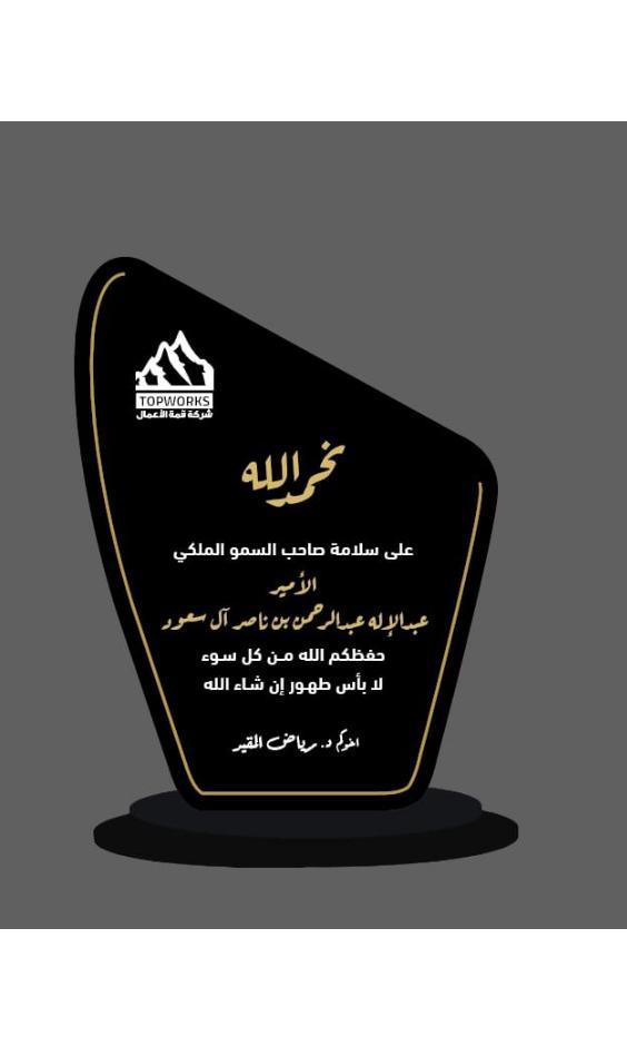 درع تذكاري تم تسليمه لصاحب السمو الملكي الأمير عبد الإله بن عبد الرحمن بن ناصر آل سعود بمناسبة شفاء سموه بعد عملية أجريت له